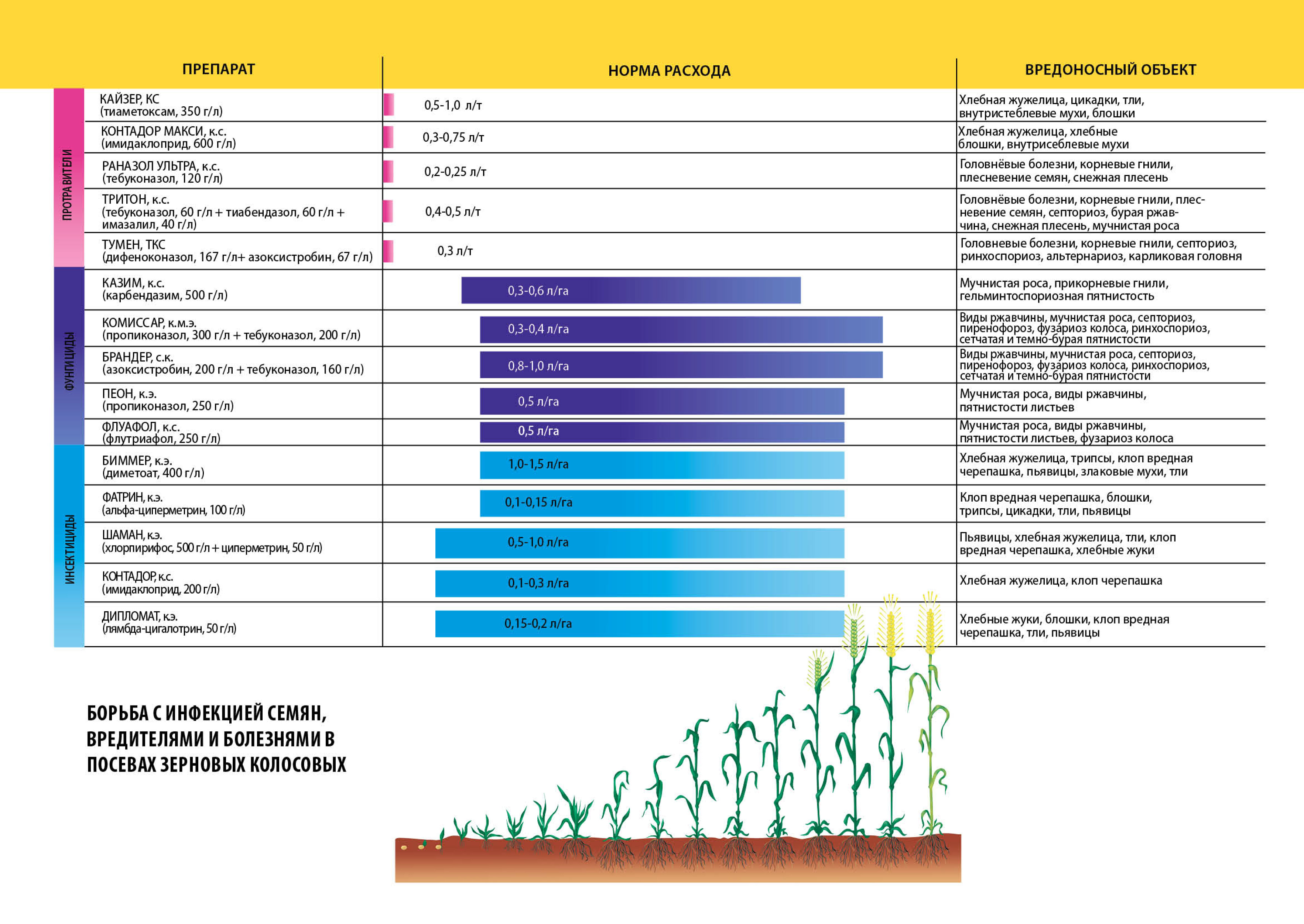 Борьба с инфекцией семян, вредителями и болезнями в посевах зерновых колосовых